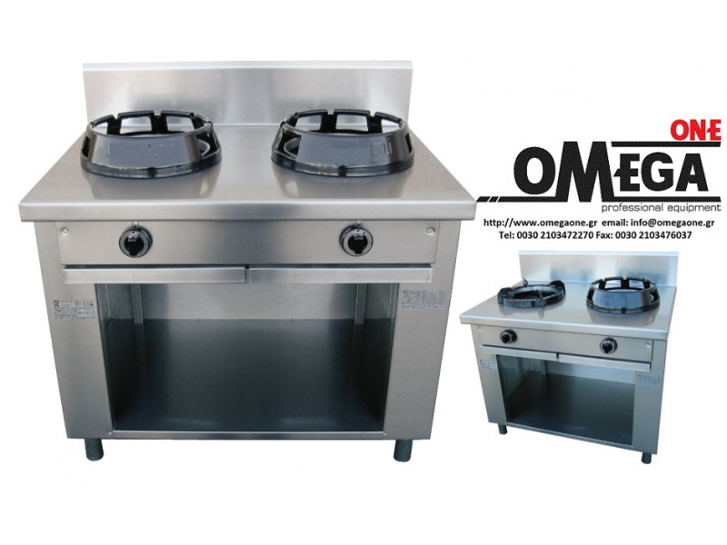 Chinaherd Gas Wok mit 2 Flammig mit offenem Unterbau