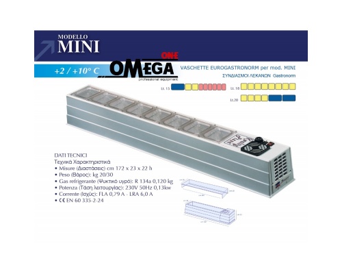Επιτραπέζιο Ψυγείο Σαλατών & Πίτσας διαστ. 1720x230x220 mm mod. MINI