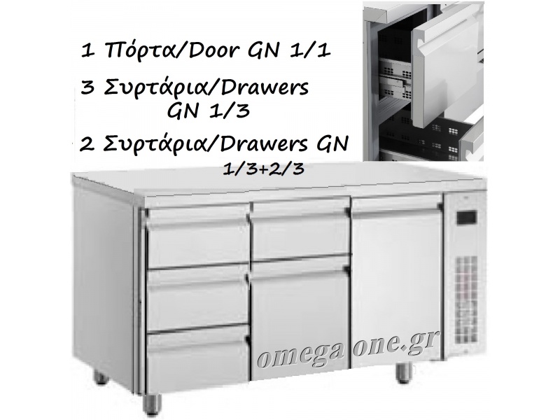 Συντήρηση Ψυγεία Πάγκοι με Συρτάρια & Πόρτες Χωρίς Μηχανή μήκος 1546mm