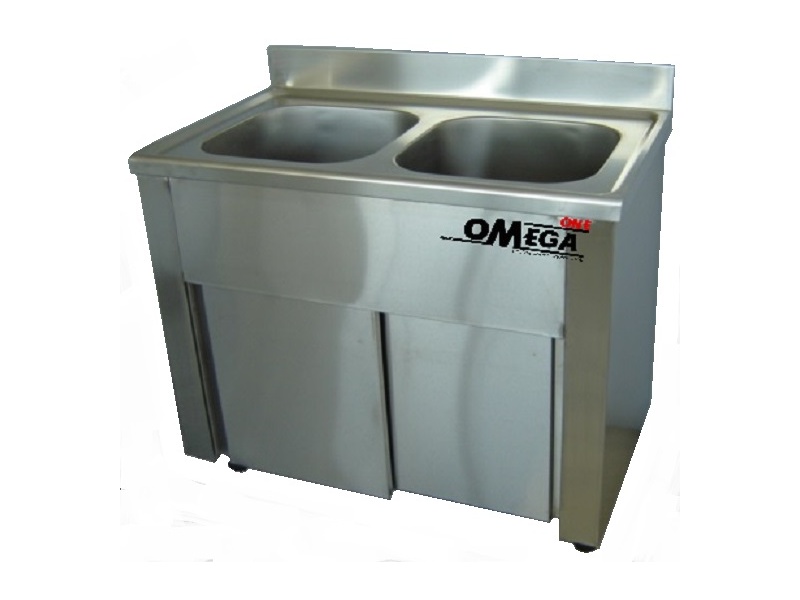 Commercial Stainless Steel Double Bowls Sink -Sliding Doors